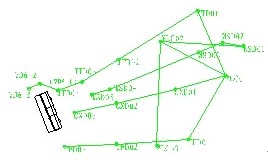 现结合我们工作实际,作一些实际应用上的说明:我们承担了某水电站厂区枢纽工程的施工测量工作,进场之际我们就建立了一级导线闭合环,观测资料经平差后,将坐标点的大地坐标输入AutoCAD平台,得到图3所示,以后随着工程的进行,我们陆续加密了一些支导线点,同样将坐标成果录入,这样从真正意义上,实现了坐标资料的数字化管理,这也方便了以后的坐标管理,同时也方便了以后在一些特殊情况下的图形应用。具体地讲就是,依据设计提供的结构关系,在图中设立足够的施工坐标系(以我们在外业放样中设站所需为准)并保存之。在以后的工程应用中,我们只需打开对应坐标系,利用ID命令点取我们需要的点,其对应坐标也就出来了。