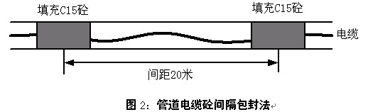 对于敷设于管道内的供电电缆,采用混凝土间隔包封的办法,即每隔20米破开供电管道,用C15混凝土对供电电缆进行包封。此防盗措施导致电缆无法采用牵引方式进行盗窃,从而达到防盗的目的。
