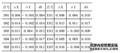 网络RTK解算出来的坐标数据与原坐标成果进行了比较,结果见下表: