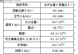 2)当SF6断路器气室压力下降到一定值时,要充入合格的SF6新气。充气前,应严格对新气进行检查测试。检测标准如表2所示。