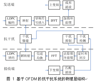 基于OFDM[2]的抗干扰系统的物理层结构如图 1所示: