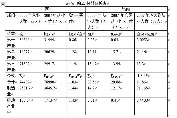 本文根据中经网统计数据库查询与辅助决策系统中2003年和2007年的数据,以各产业从业人数为指标构造偏离-份额分析表(表2):