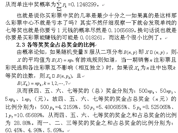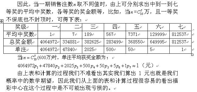 如果说概率论的诞生是因为人们对生活中某些现象无法解释而进行研究才产生的话,那么对于现在我们生活中的某些现象我们可以毫不顾忌的说是因为有了概率知识作为后盾才产生的。例如:现在居民生活中以及大街小巷各种各样很常见的彩票。