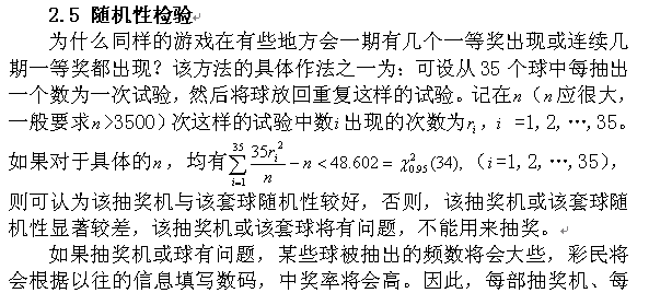如果抽奖机或球有问题,某些球被抽出的频数将会大些,彩民将会根据以往的信息填写数码,中奖率将会高。因此,每部抽奖机、每套球在使用之前都必须做上述试验,不合格的不能用来抽奖,否则,这套设备对福彩中心是不利的。