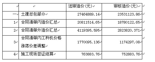 下面以一个本人审核过的工程例子,逐步分析除上述审核内容外,结算审核中还需要特别注意的问题及审核办法。