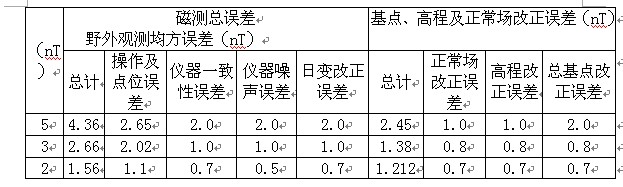 表1 磁测误差分配表