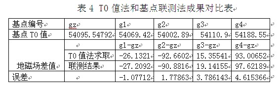 在某矿调项目,磁测工作区面积较大,总共有5个分基点,表4列出了T0值法和基点联测法求取的总基点和分基点差值成果。