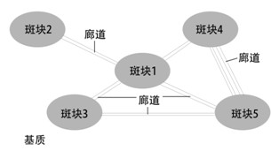 1969年,克罗(D.S.Crowe)率先提出景观规划、设计应注重“创造性保护”工作,即既要最佳组织调配地域内的有限资源,又要保护该地域内美景和生态自然,这标志着“景观生态学”理论的诞生,它强调景观空间格局对区域生态环境的影响与控制,并试图通过格局的改变来维持景观功能流的健康与安全。从而把景观客体和“人”看作一个生态系统来设计,它的基本模式是“斑块——廊道——基质”模式:如图1所示。