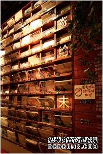 至于完全新加上去的东西如路灯,店铺的招牌,某些室内的装修等,没有矫揉造作装作是古代的文物,在保留现代痕迹的同时与古建和谐统一,共同营造出新的场所精神。如图4所示, 现代的电灯朴实无华,放在房屋一角,辉映着石板与木门。如图5所示,咖啡店的装潢虽然使用新的材料,新的科技,但是依然有传统的味道。